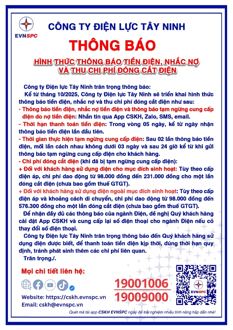 cong-ty-dien-luc-tay-ninh-thong-bao-hinh-thuc-thong-bao-tien-dien-nhac-no-va-thu-chi-phi-dong-cat-di