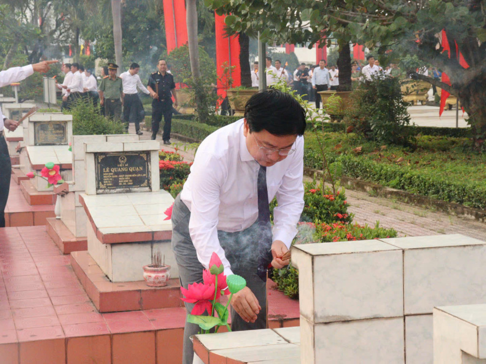 Sau nghi thức thắp hương và dâng hoa tại Đài tưởng niệm, các đại biểu đến thắp hương lên từng phần mộ liệt sĩ. Sống trong nền độc lập, tự do, thế hệ hôm nay mãi mãi biết ơn các thế hệ cha anh đã dày công vun đắp cho sự nghiệp cách mạng nở hoa độc lập, kết trái tự do, tô thắm lá cờ vinh quang của Đảng.