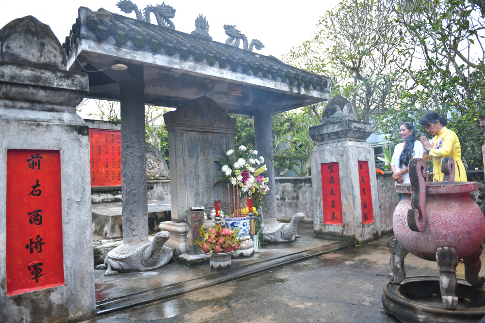 Du khách đến tham dự xin chữ thư pháp trong khuôn viên khu di tích