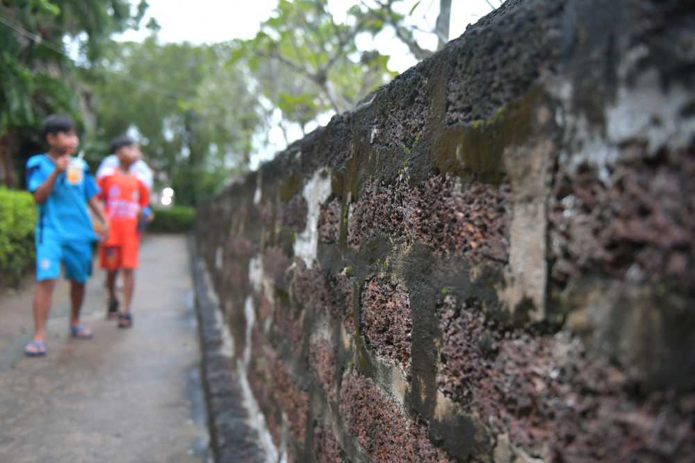 Khu vực tường bao lăng mộ được xây dựng bằng đá ong mang nét cổ kính